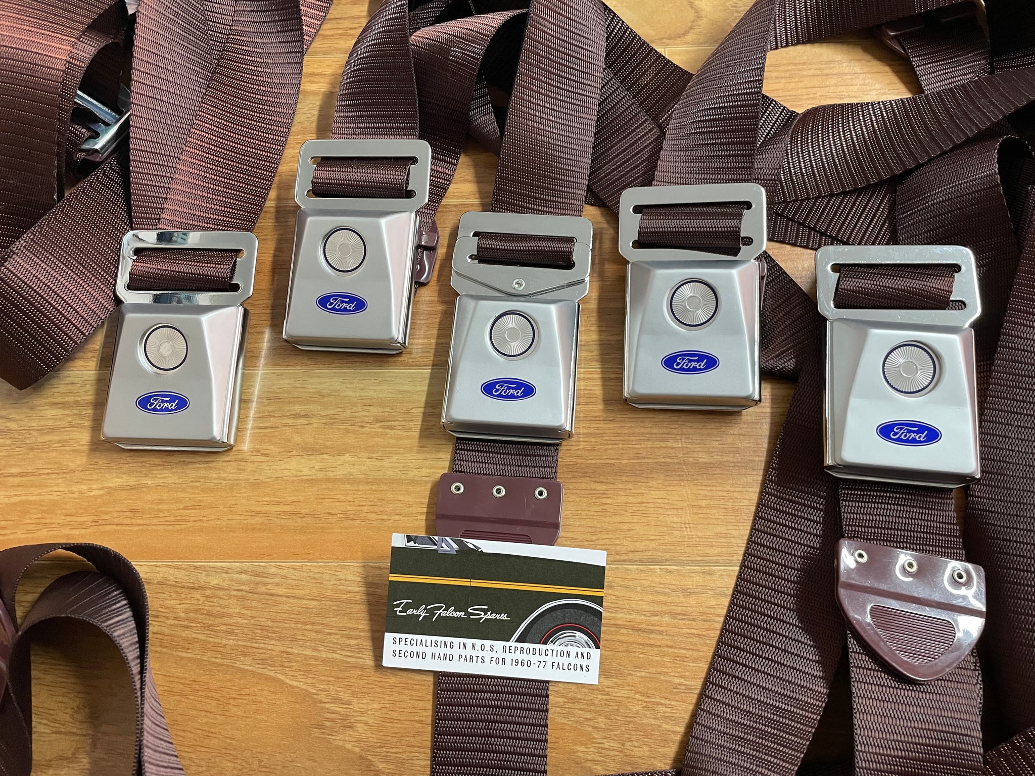 New Reproduction Set of 5 XW XY Burgundy Seat Belts,